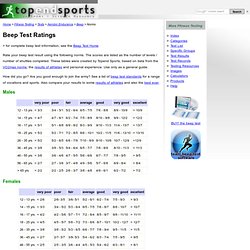 The multi-stage fitness test, also known as the bleep test, beep test, Australia: 10.1: Preliminary Fitness Test Standard required prior to direct recruitment scheme. New Zealand Defence Forces: Military: New Zealand: Navy : 6.1 Airforce : 7.1 Army : 8.8: ... Read Article